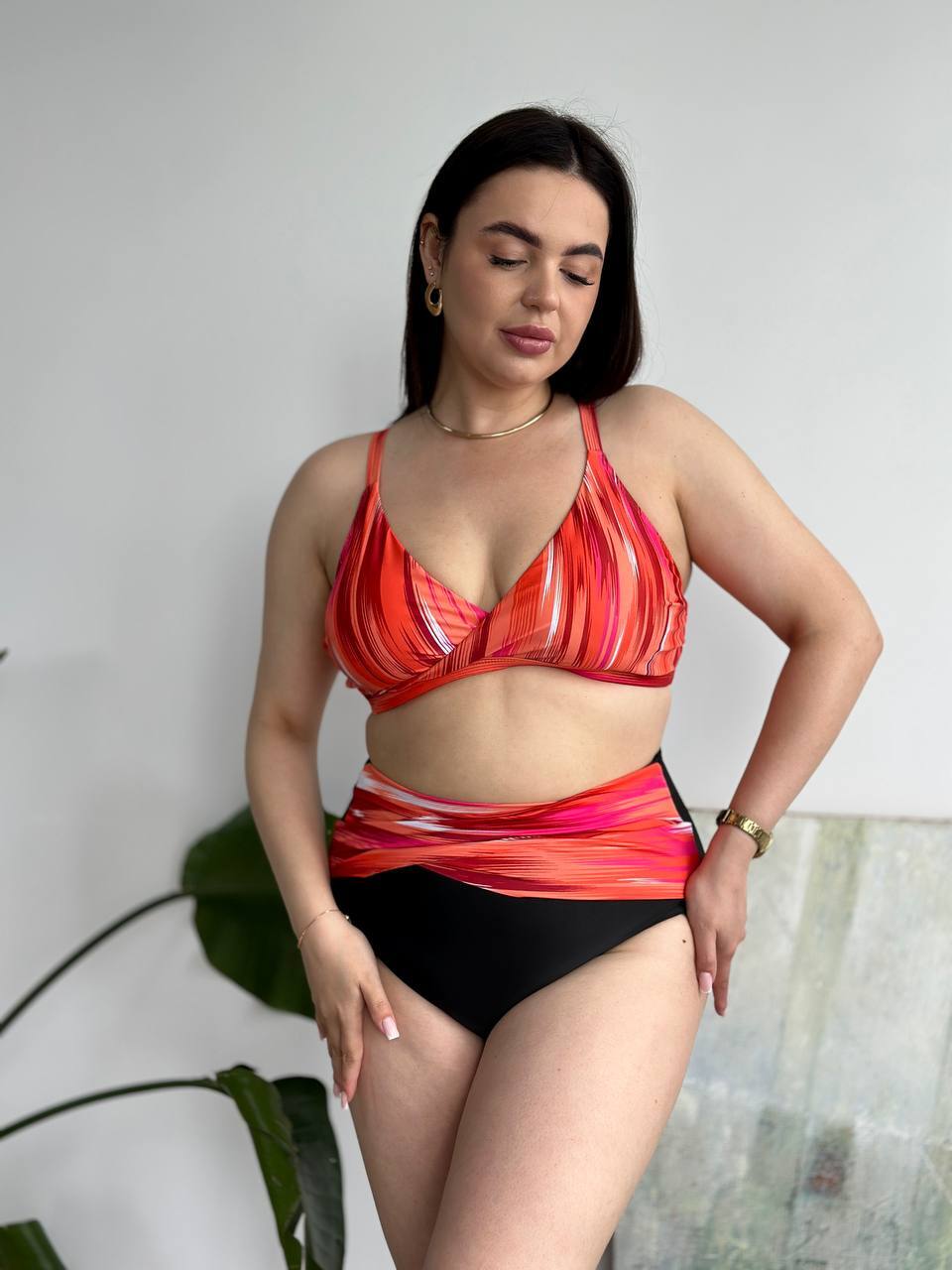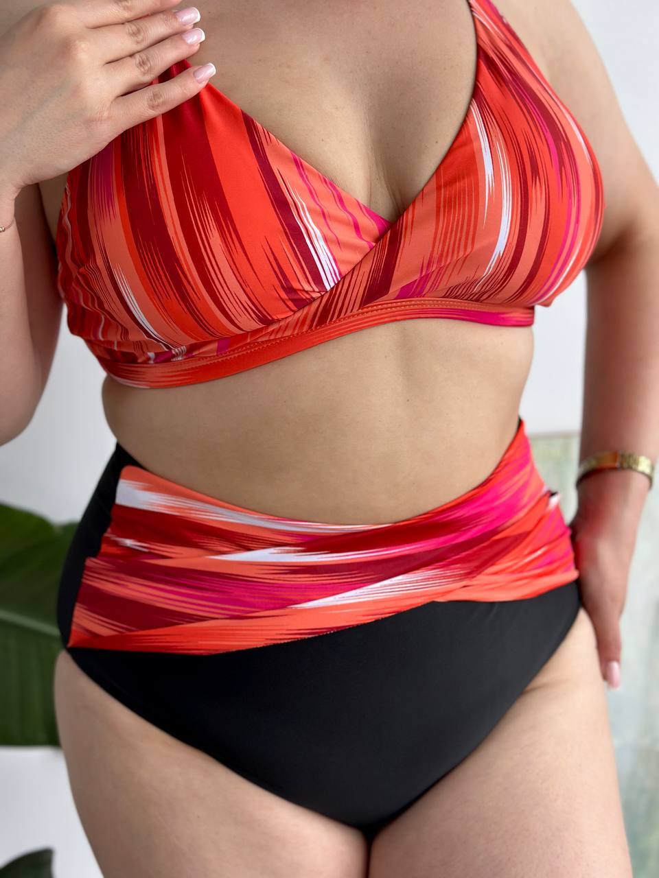 ✔️Бюстик з твердою чашкою з кісточками та широкими бретелями тримає форму навіть під час активного відпочинку, а високі трусики на талії — не перетискають, не врізаються, не сповзають