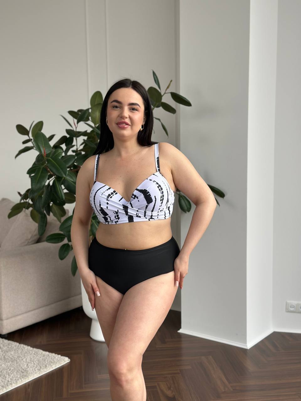 ✔️Бюстик з твердою чашкою з кісточками та широкими бретелями тримає форму навіть під час активного відпочинку, а високі трусики на талії — не перетискають, не врізаються, не сповзають
